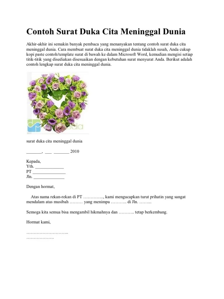Nov 15, 2021 · telah meninggal dunia pada : Pengurusan harta warisan yang ditinggalkan oleh orang yang telah meninggal dunia adalah hak dari ahli waris. Nov 16, 2021 · contoh surat keterangan ahli waris dari kelurahan surat keterangan ahli waris no. Lampiran ini digunakan dalam hal persyaratan berupa surat keterangan kematian. Jan 11, 2021 · download contoh surat kematian doc.